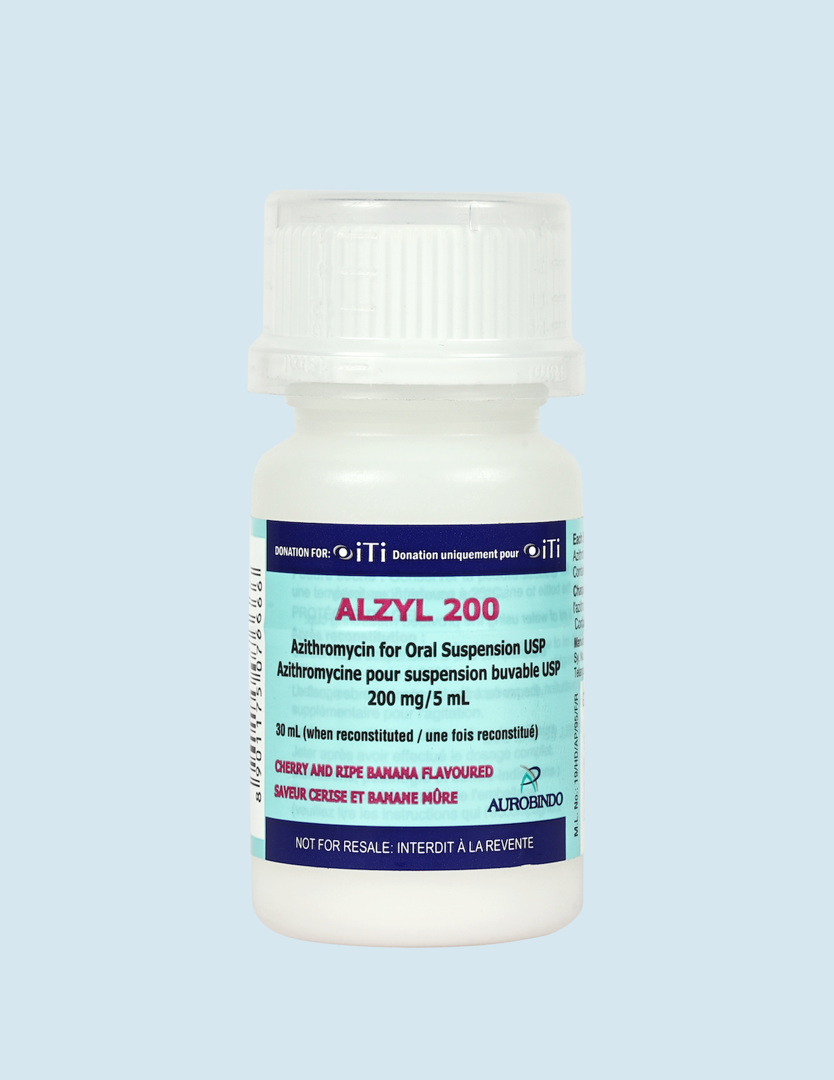 Aurobindo’s product, ALZYL azithromycin powder 200mg/5ml oral solution, has a shelf life of 24 months, comes in a cherry-banana flavor, and is packaged into 48 bottles per carton, each supplied with a package insert and four dosing cups per bottle.
